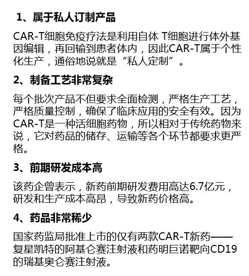 CAR-T抗癌产品“贵得离谱”主要原因是,不能批量化、标准化生产,而是必须要一个患者 一个批次进行研发生产。