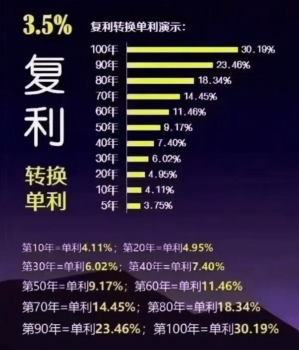 例如:存30万定期在银行,年利率3.5%(现在而今眼目下,银行哪里还有这样的年利率了),第一年利息是1.05万,第二年、第三年乃至之后都是每年1.05万的利息。