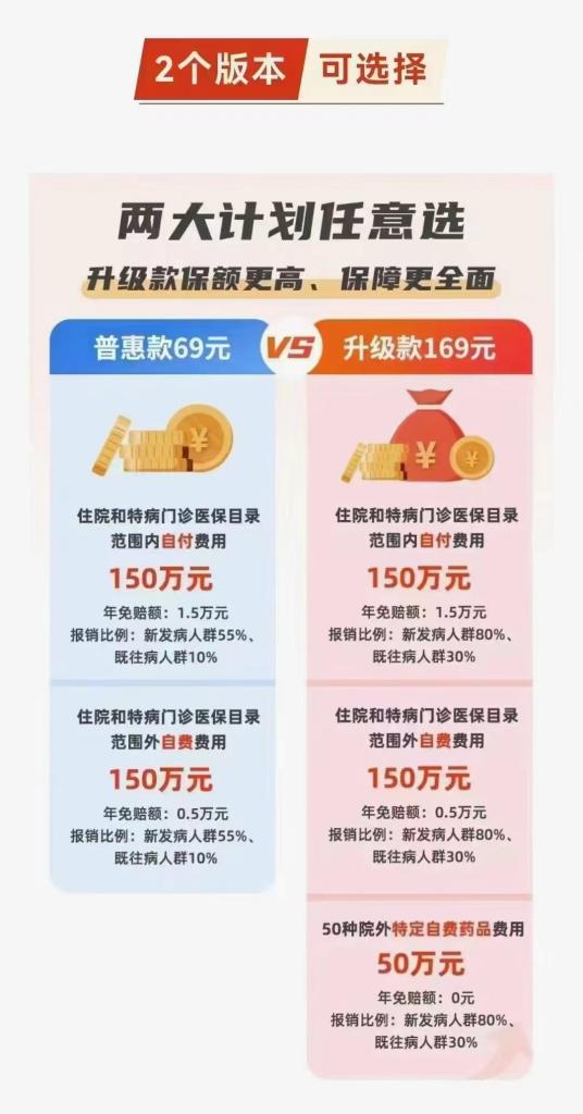 “重庆渝快保“作为紧密衔接基本医保和大病保险的有效补充,基本医保和大病保险报销的是医保目录内费用,“重庆渝快保”保障范围包括住院和特病门诊医保目录范围内自付费用、住院医保目录范围外自费费用,169元升级款还承担“特定自费药品费用”。根据参保人购买的保险方案不同其报销比例和范围均不同,最终理赔结果以保险公司审核为准。