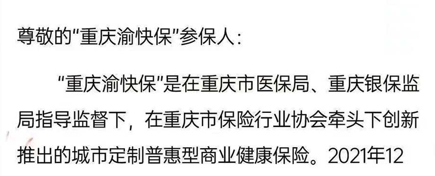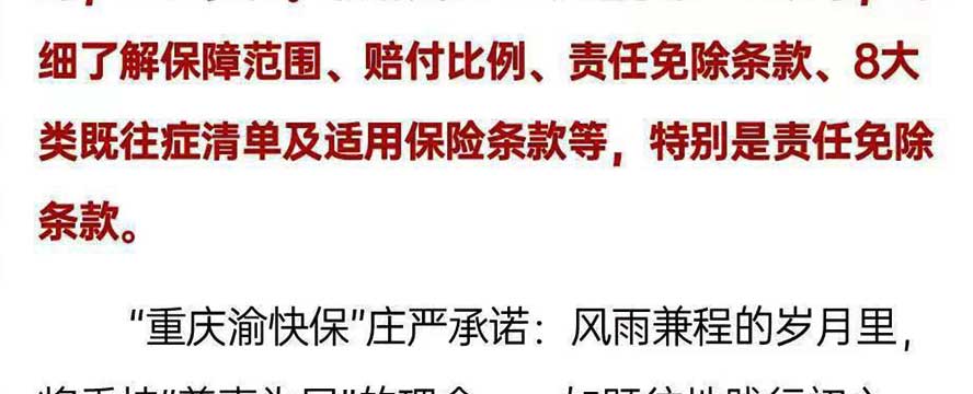 “重庆渝快保”不限职业、不限年龄、不限健康状况,既往症可保可赔。