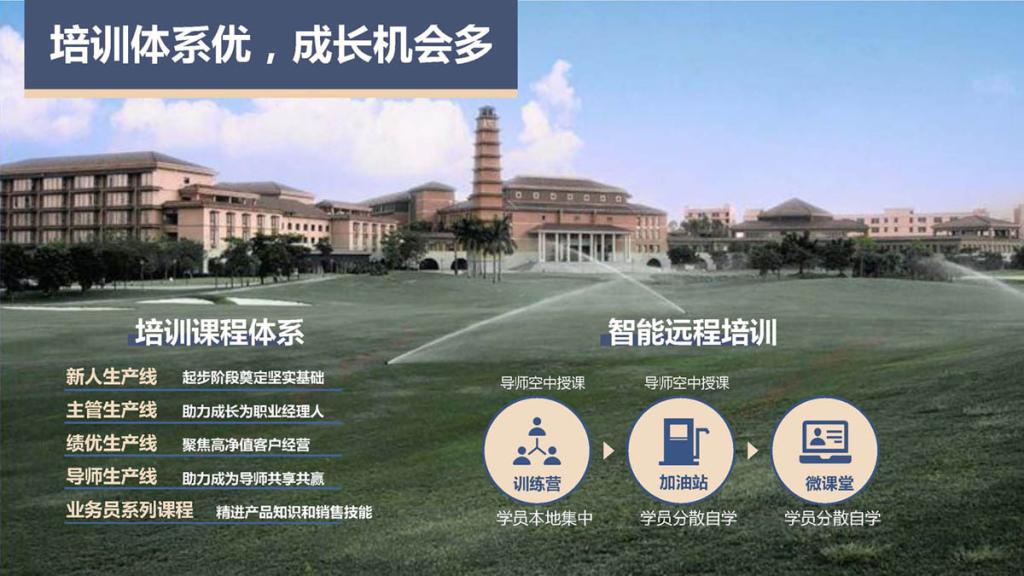平安拥有完善的培训课程体系,涵盖新人、主管、绩优、导师生产线及业务员系列课程,帮助大家提升销售、增员、辅导、团队经营管理等技能。