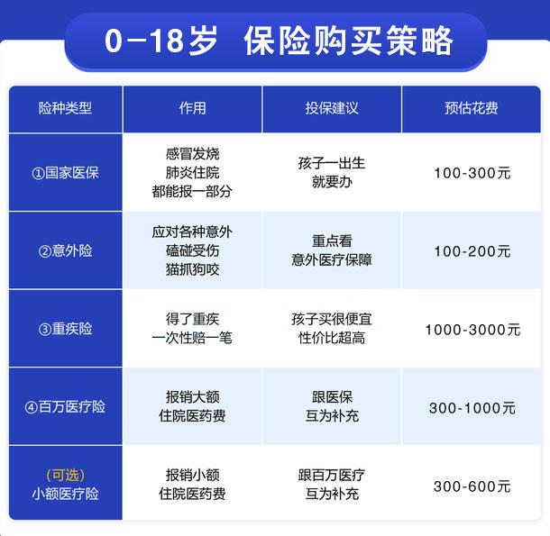 预算不足的话,建议少儿医保一定要买!其余3种保险,可以建议你的预算和孩子的实际情况做出取舍!