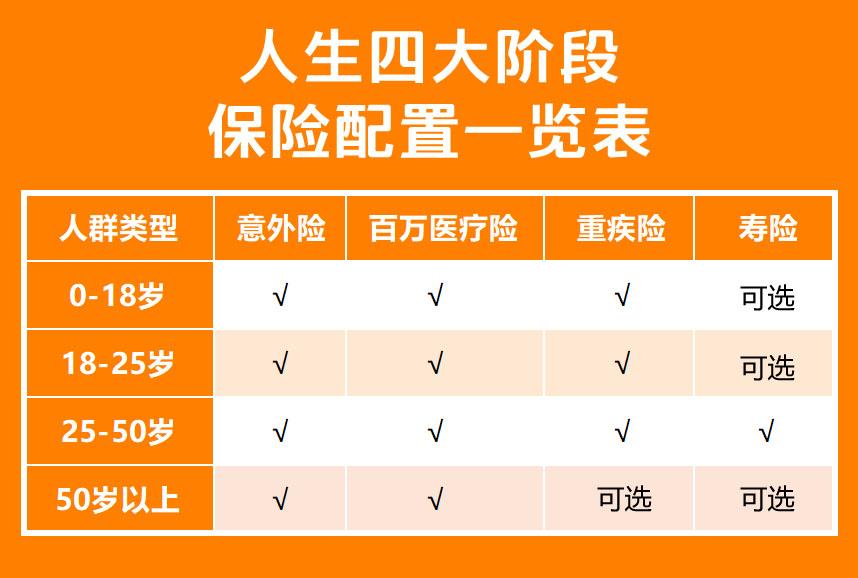 下面,我把人生分成4个阶段来分析,看看人生各个阶段的保险到底应该怎么买?