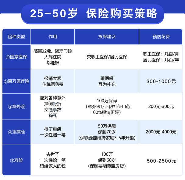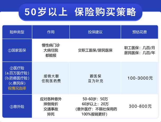 因此,我建议50岁以上的人群买保险时,重点考虑以下3种保险。