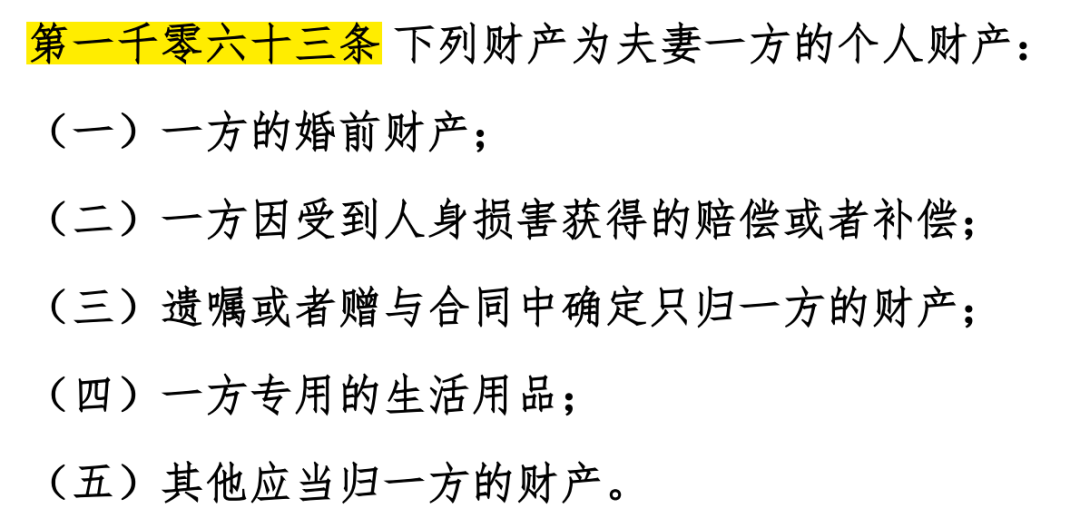 再如《民法典》1063条对于单方资产,不受混同也有明确的规定