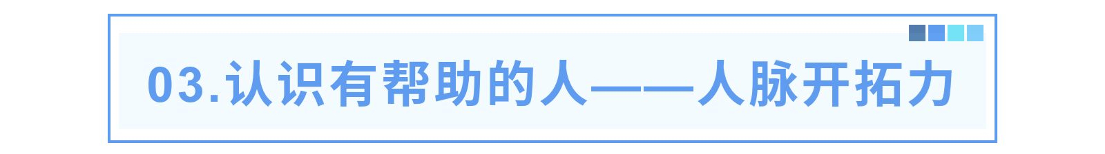 随着业务领域的深入,人脉显得越发重要,成为职业道路上不可或缺的法宝,会给你带来更多的机会和资源。而开拓业务伙伴或同行好友,并与之维持良好关系的能力,就是人脉开拓力。