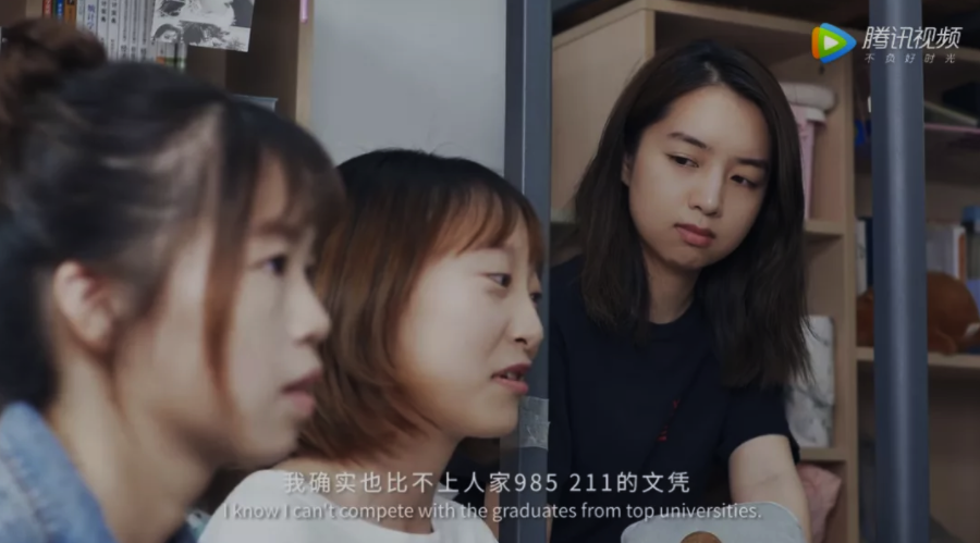 短片里的女生一开口就是对自己强烈的质疑:“像我们这种普通大学的毕业生,确实比不上985/211的毕业生,本身起点低,总是面临更多的被选择。”