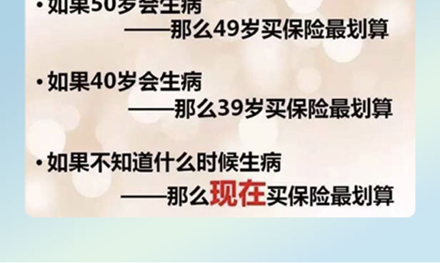 所以说买保险年纪越大买越难买,早点配置好保险得到的保障就越多保的时间就越长保费就越便宜。