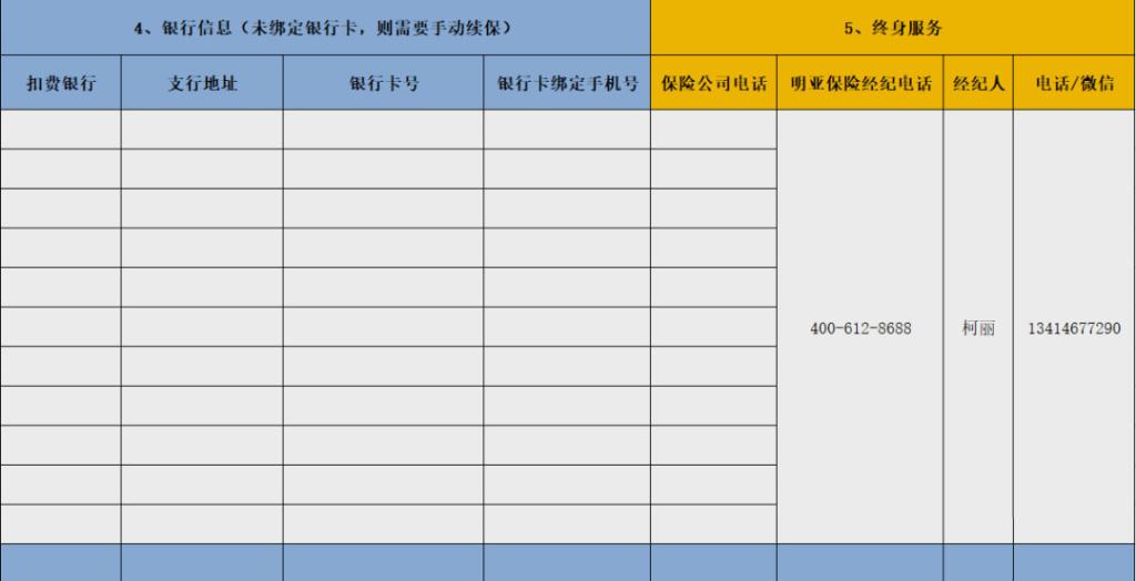 银行卡绑定手机号:如更换手机号码,通过以上保单整理表可快速做保全变更手机号码,以方便及时收到扣款信息。