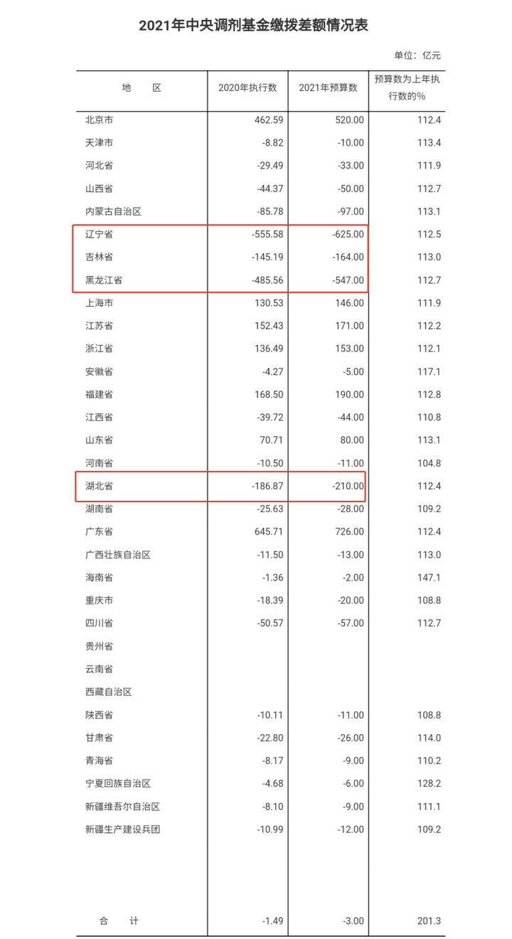 北京、上海、江苏、浙江、广东和福建经济发展比较好,属于净贡献省份,其它都是国家下拨,尤其是个别夸张的省份(主要是黑龙江、辽宁、吉林和湖北四省)更严重。