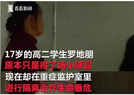 2017年11月11日晚上,17岁的罗地朋因为感冒咳嗽,被同学送到当地医院输液治疗。但是谁也没有想到,事情并没有这么简单,随后,他被转送至成都接受治疗,诊断为重症肺炎ARDS呼吸衰竭。
