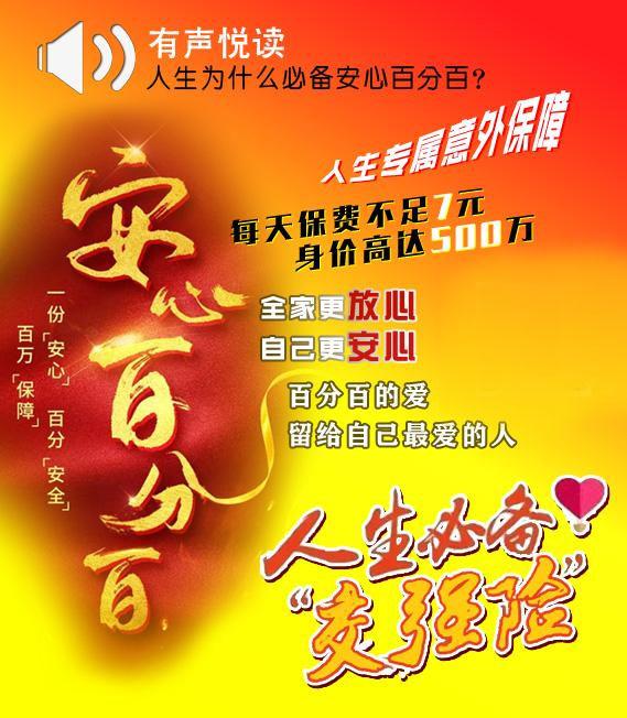 车辆有了交强险才可以上路,人生拥有了安心百分百这个交强险,全家更放心、自己更安心!百分百的爱就能留给自己最爱的人!