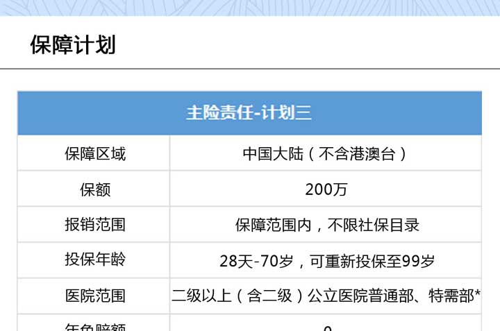 保什么(14) 老人健康(1) 老人医疗(5) 为谁买(13) 28天-70周岁(5) 日均不足0.5元(9) 百万医疗(37) 1年(10)