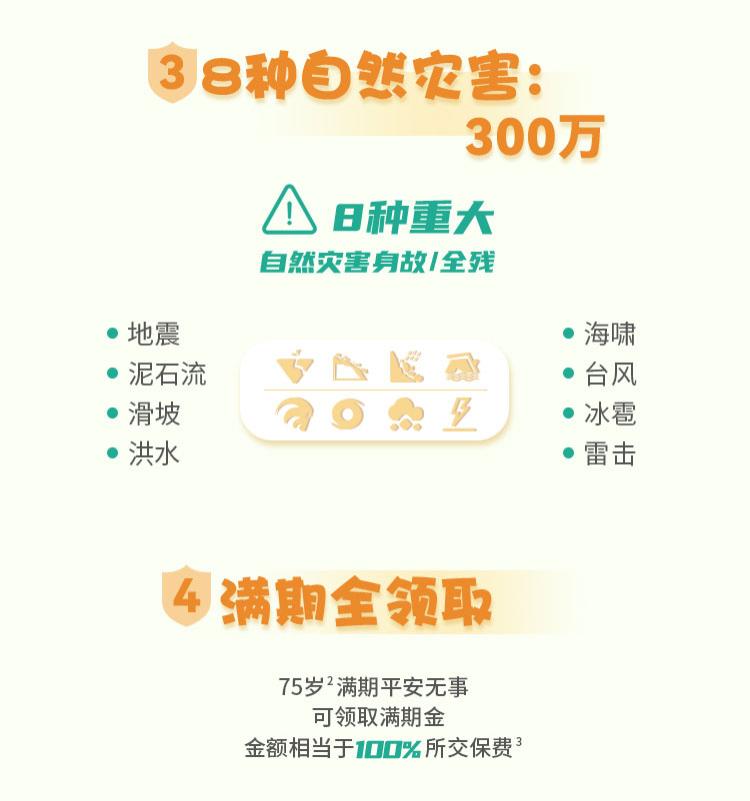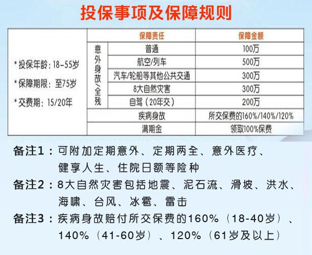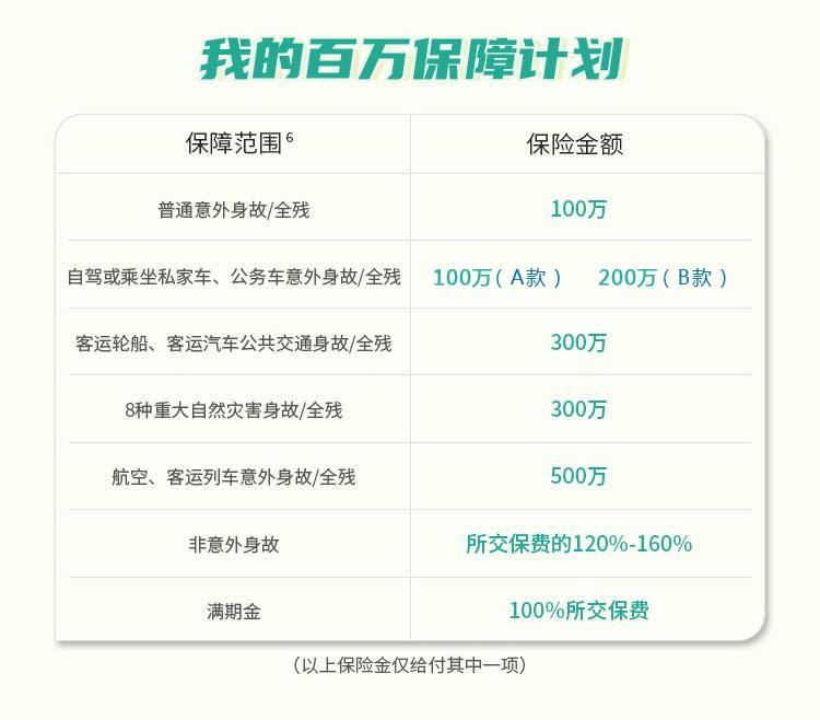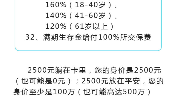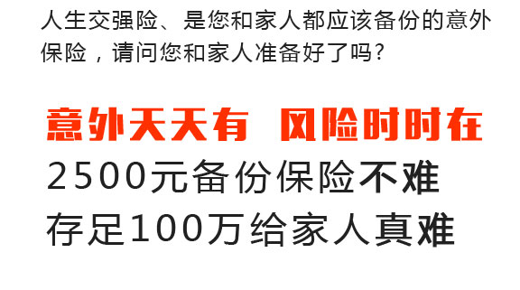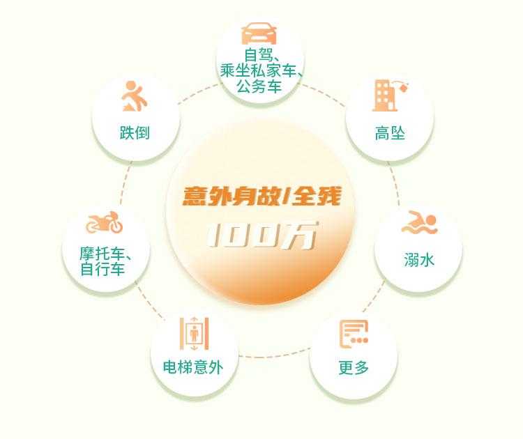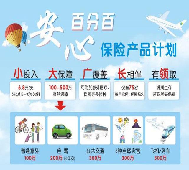 ‣ 人生专属百万身价意外保险——安心百分百,500万保额保障到75岁