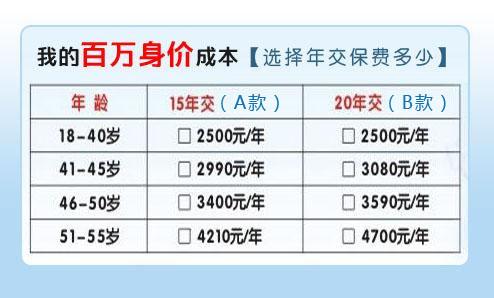 100万(4) 还保费(1) 到75岁(1) 18-55岁(1) 赔多少(1) 百万身价(2) 百分百(2) 500万(2) 保什么(14) 日均3-7元(1)