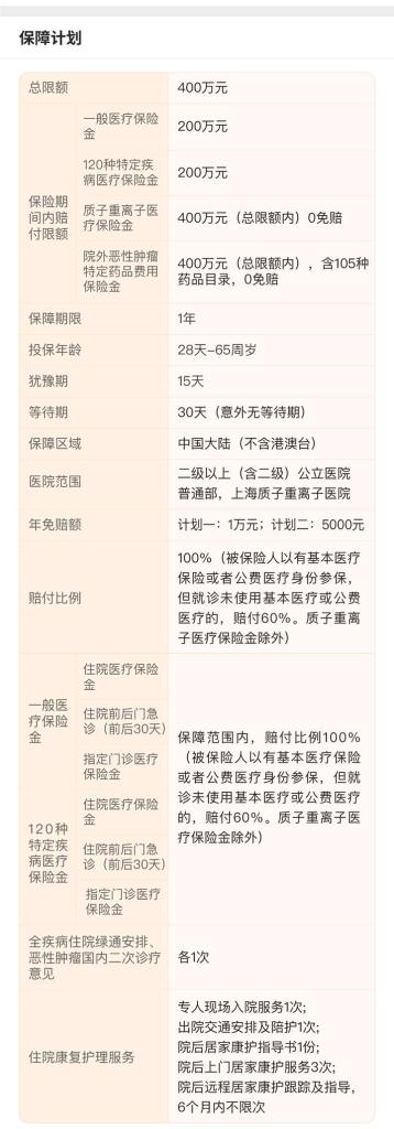 28天-65周岁(3) 谁能买(6) 保什么(14) 百万医疗(37) 院外特药(4) 日均0.5-1元(1) 400万(3) 105种(3) 1年(10)