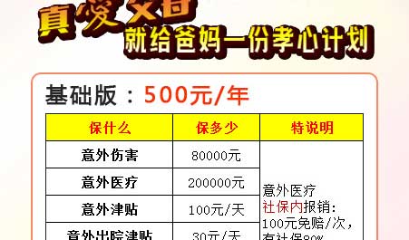 为谁买(13) 百万医疗(37) 意外险(6) 日均1-3元(3) 孝心宝(1) 中老年人(4) 100%报销(3) 0免赔(1) 孝心(1) 1年(10) 买什么(15) 45周岁-80周岁(1)