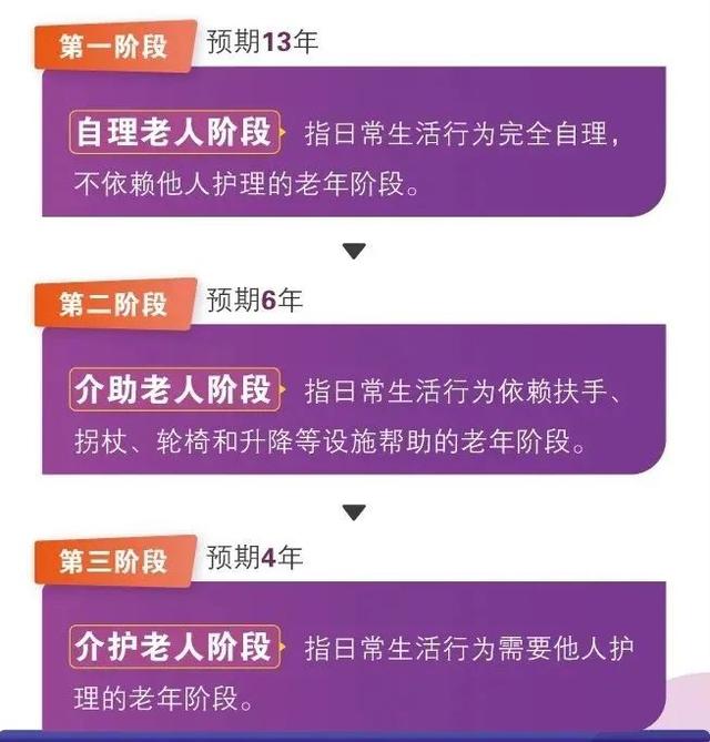 在这个基础上,按照《老年人社会福利机构疾病规范》标准划分,养老可以细分为三个阶段。