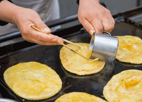 1300张饼,每张卖10元钱,一天收入是13000,除去鸡蛋、面粉和油火成本,一天纯利润近万!