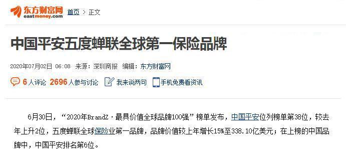 相关链接:平安五度蝉联全球第一保险品牌