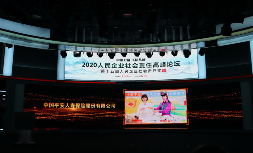 近日,由人民日报社指导、人民网主办的“2020人民企业社会责任高峰论坛暨第十五届人民企业社会责任奖颁奖典礼”在北京举行,平安人寿凭借多年来在精准扶贫及公益领域中的突出贡献和实践成效,荣获“年度扶贫奖”。