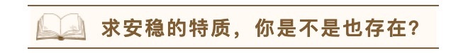 这里说的“求安稳”,一方面是指在一家公司十年如一的工作,看似忠诚、勤恳,实际上工作上并无太多亮点,只是本本分分不求出错;又或者一套方法,使用N年,没有突破和创新等等。